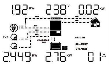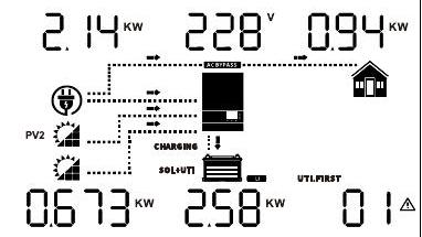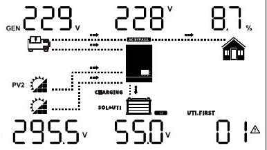 Note: To restart the inverter, all power sources need to be disconnected. After the LCD screen light is off, only use the battery to boot. 请注意: 要重新启动逆变器,需要断开所有电源。LCD 屏幕指示灯熄灭后,只能使用电池启动。