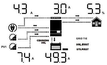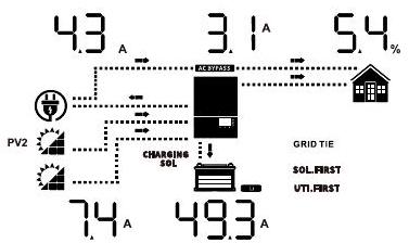 Set "Battery First" or "Solar First" as the priority of output source. 将 “Battery First” 或 “Solar First” 设置为输出源的优先级。