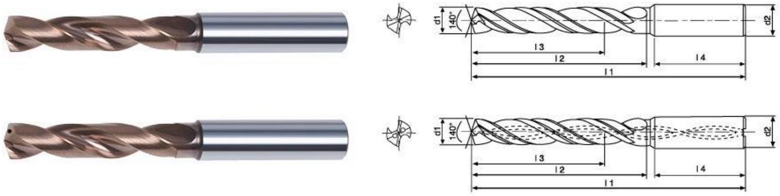 | 钻头直径 d1(m7) Drill diameter d1 (m7) | 倍径 Diameter multiple | 冷却方式 Cooling method | 柄部形式 Shaft type | 型号 Model number | 唡径 Diameter | 总长 Total length | 槽长 Slot length | 推荐钻深 Recommended drill depth | 柄长 Shaft length |