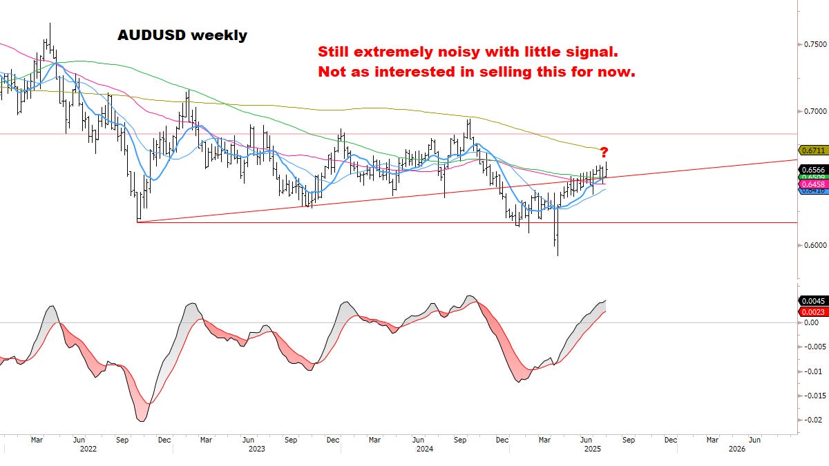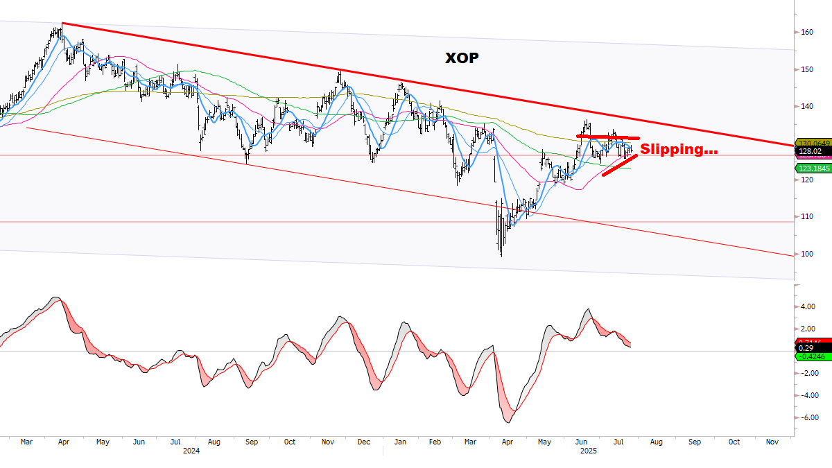AMAT (lower this week again), BKNG (10/20 stop), COF (looks like a topping reversal on Wednesday), IONQ (10/20 fading into a Sell cross, time may have run out for this name and the group — leading indicator for risk appetite?), JBL (monster run, spent July losing momentum however and this week’s new high was quickly reversed), LRCX (10/20 Sell cross imminent, may retest down to ~85-90?), SE (erased last week’s rally, coiling but feeling toppish), SOFI (could spike to old 2021 high ~25 as part of a topping structure, but daily already on Sell), VST (as discussed in Subscriber Chat on Wednesday, setup to sell/reduce on the gap up)