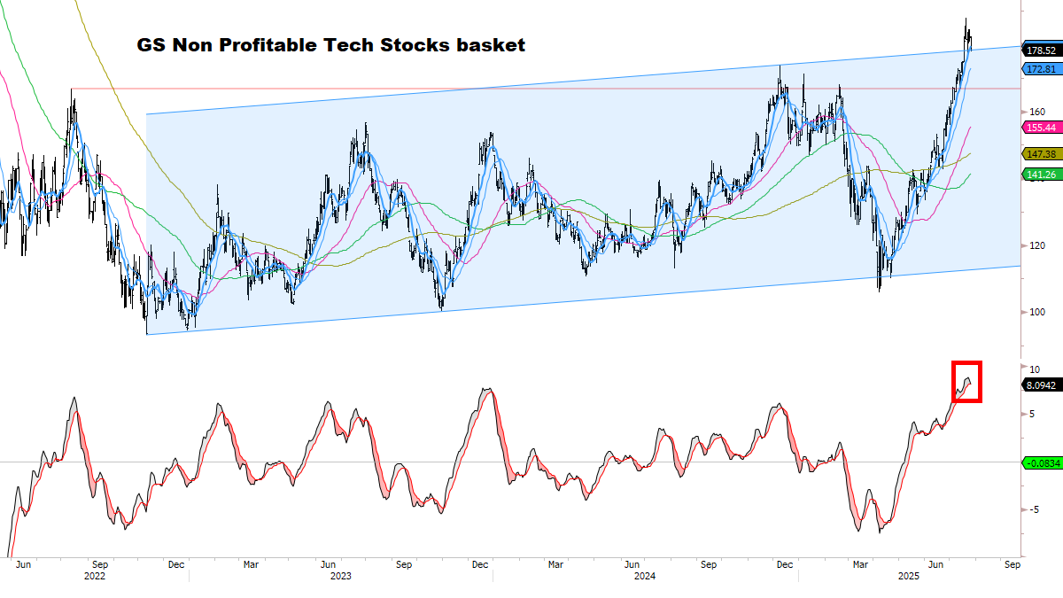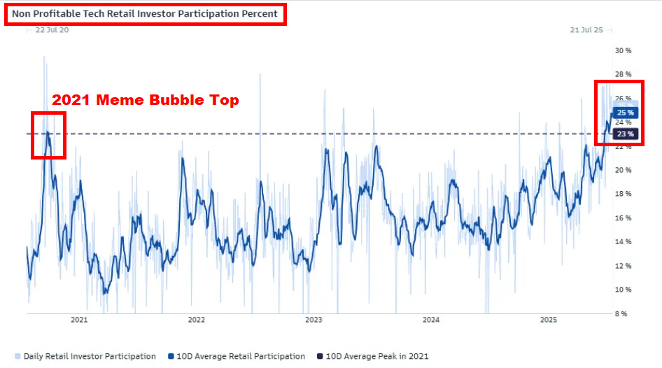 “The 10-day average of retail participation in non-profitable technology companies reached 23% — the highest level since Goldman Sachs began tracking it — and rose to 25% this week.”