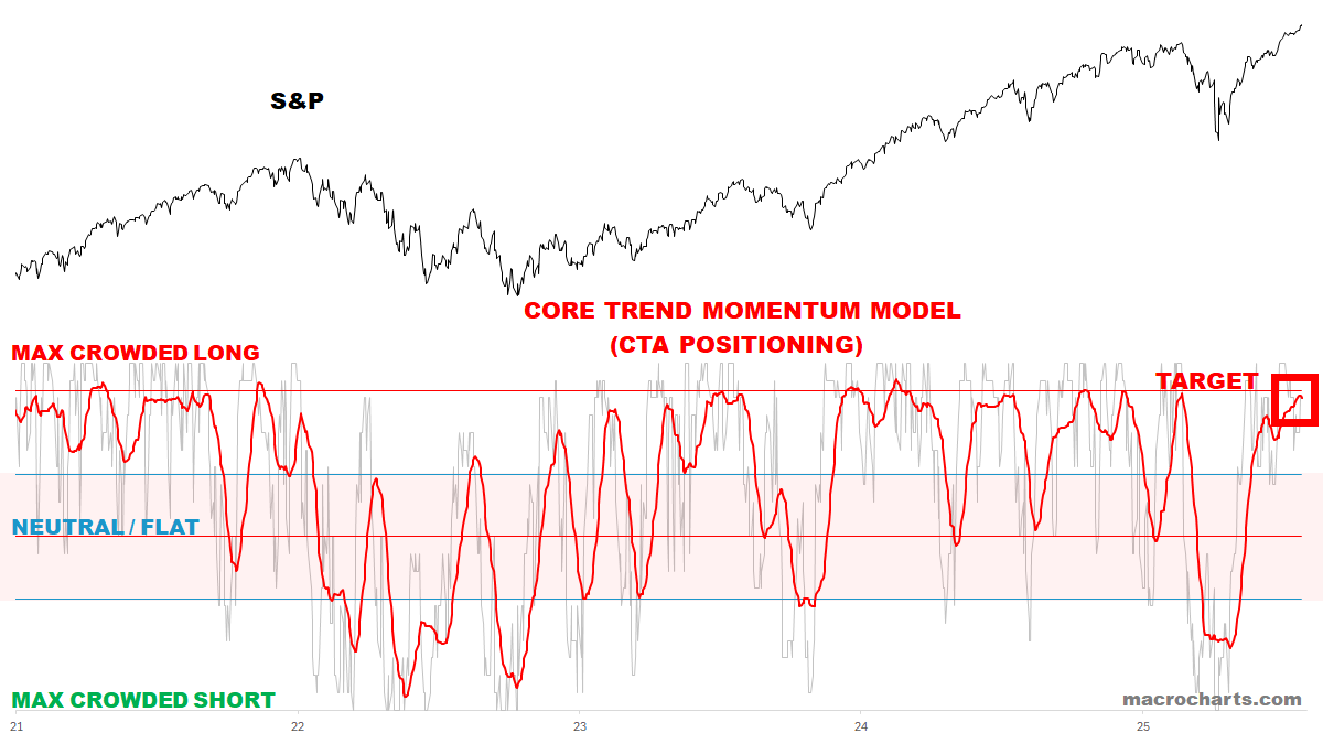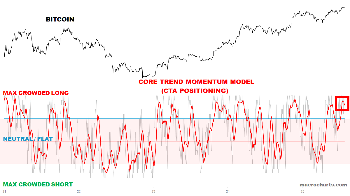 CTA Trend Positioning is turning down from overbought range — a tactical warning: