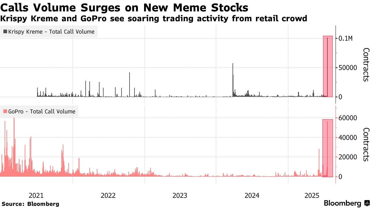 Krispy Kreme and GoPro had record-high call volumes, with Krispy Kreme's call volume spiking on Tuesday and continuing to rise on Wednesday, and GoPro having its highest call volume since 2015.