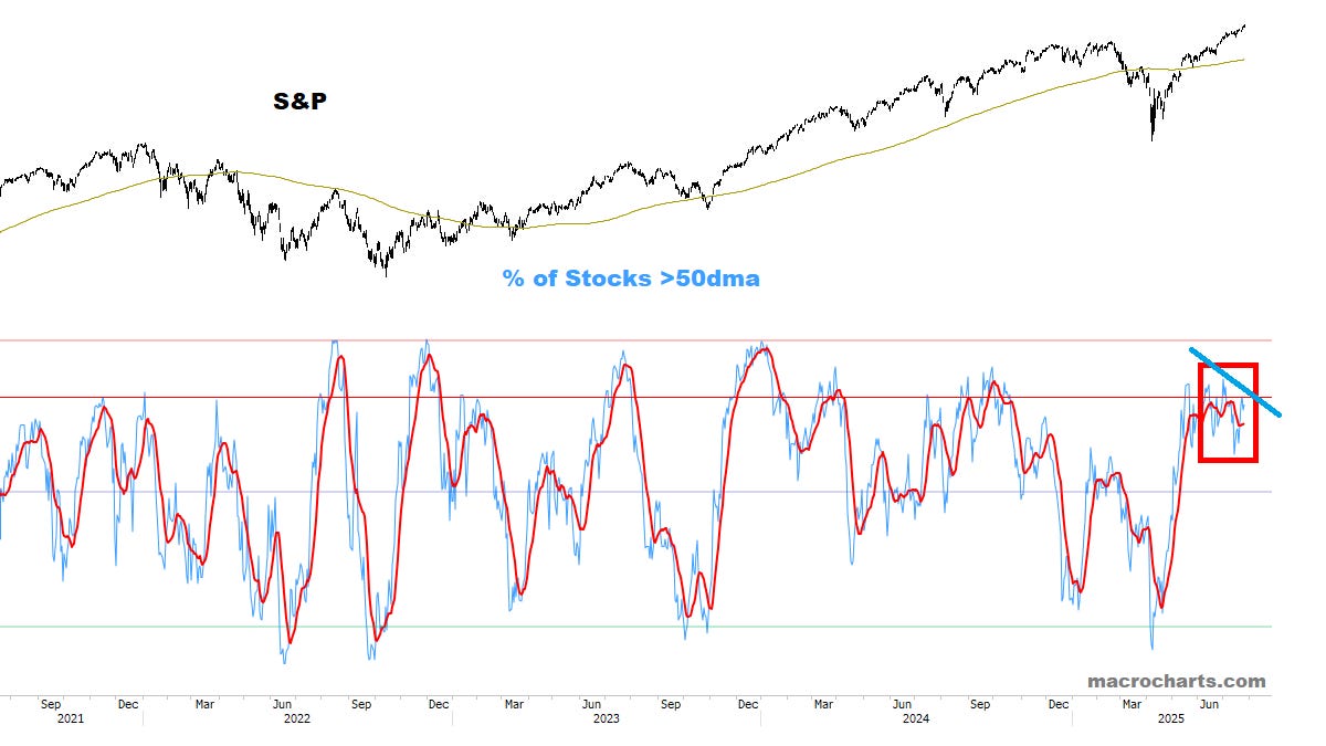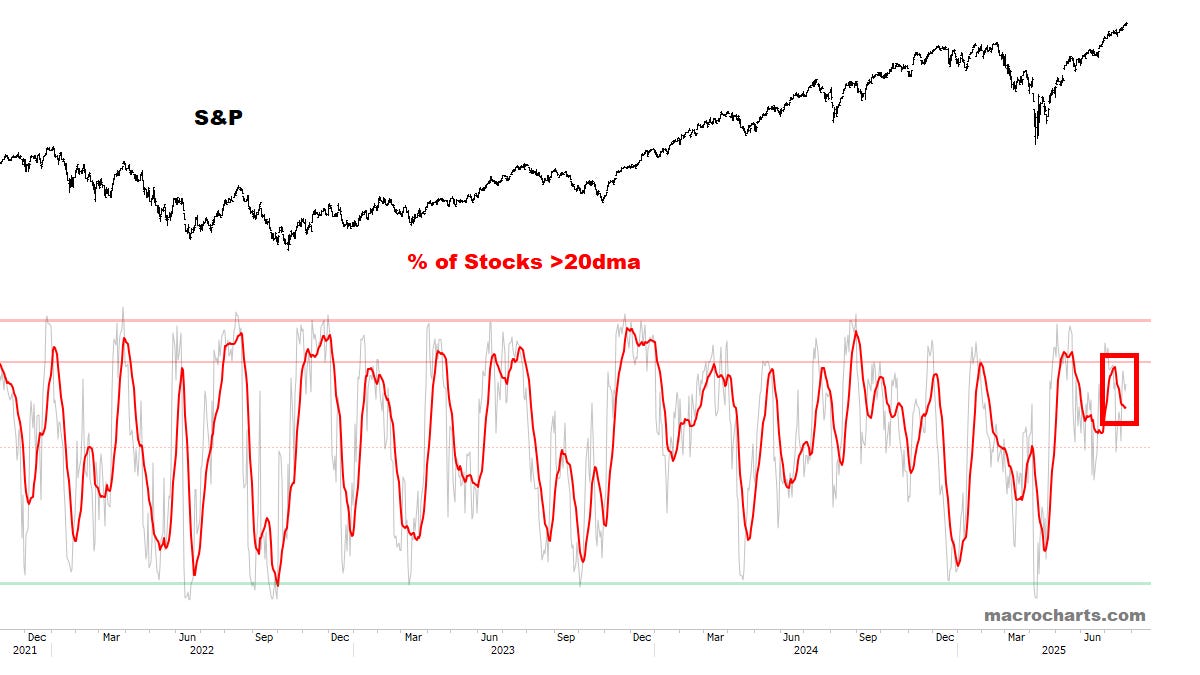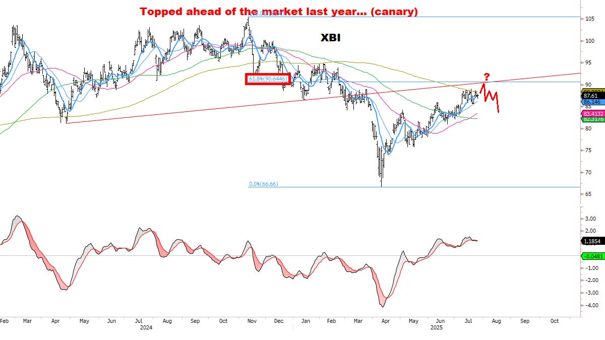 When this reaches topping range and turns down, I’ll raise cash / look to put on hedges. We’ll be sharing this and other signals with Subscribers only. No public sites or social media.