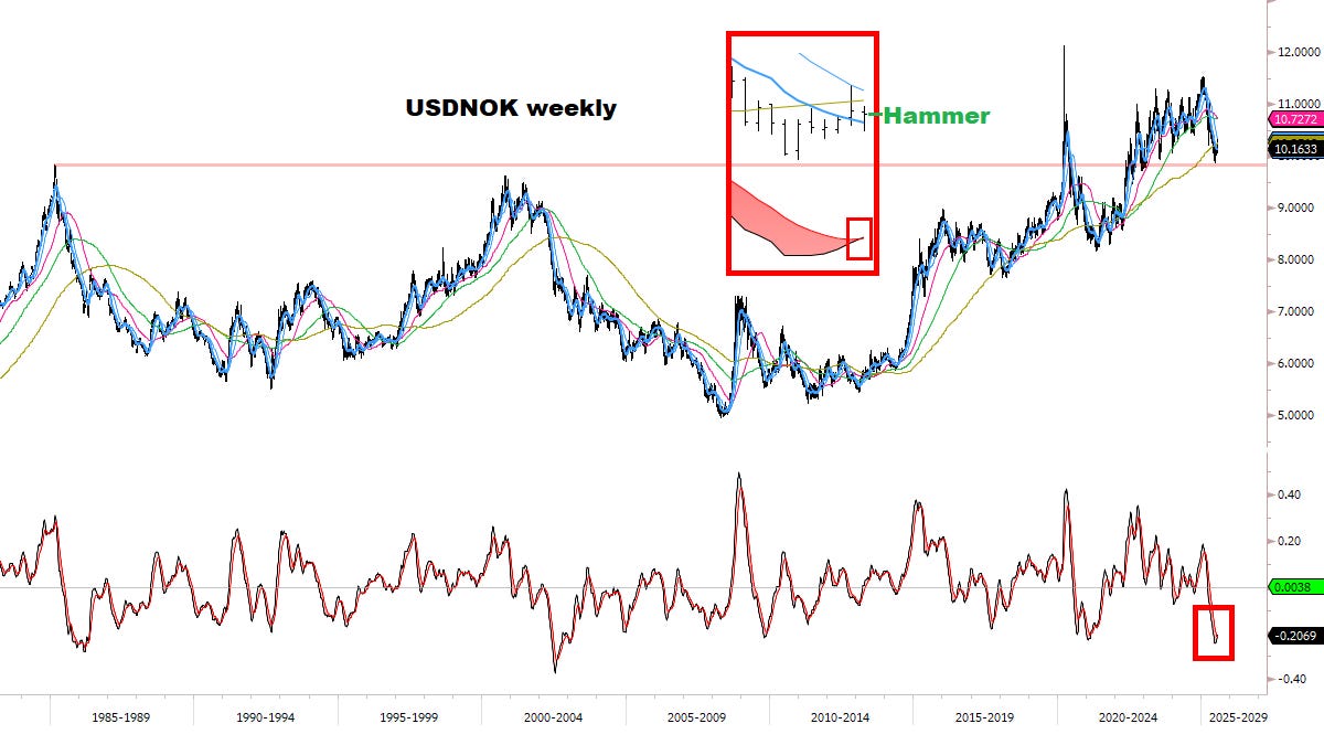 For more than twenty years, when the Dollar triggered a weekly Sell cross, it bottomed — and then rallied to the 200-week average (and beyond). The initial ~103 upside target may be conservative — but I’m working with this for now:
