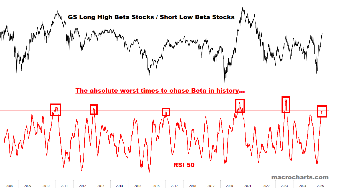 Earlier this week I mentioned JPM published a report showing “Long High Beta Stocks is now the most crowded trade it has ever been in history”.