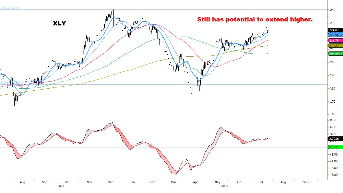 Core Sectors are still ok for now — difficult to build a top while leaders carry the market / move in synch.