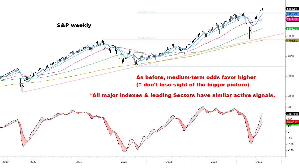 Best estimate (*subject to change*): S&P may be 2-3 weeks from an intermediate top, potentially in the 6300-6400 range. (UPDATE: Market is now in ideal PRICE range, but could still have 1-2 weeks of TIME according to historical patterns and Core Model development. Watching closely, DAY BY DAY now.)