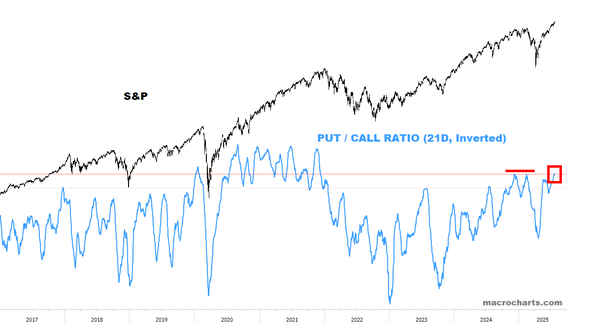 Put/Call Ratios are at the same levels as the February top — *monitoring for a turn DOWN (any extension may not be sustainable):