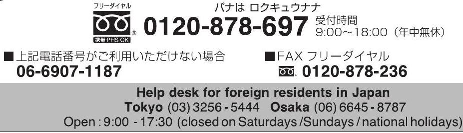 -上記電話番号がご利用いただけない場合 06-6907-1187-若無法使用上述電話號碼,請撥打 06-6907-1187