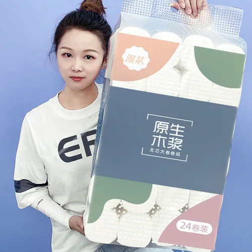 漫花卫生纸卷纸巾批发家用木浆大粗卷实惠装厕所擦手纸无芯卷筒纸