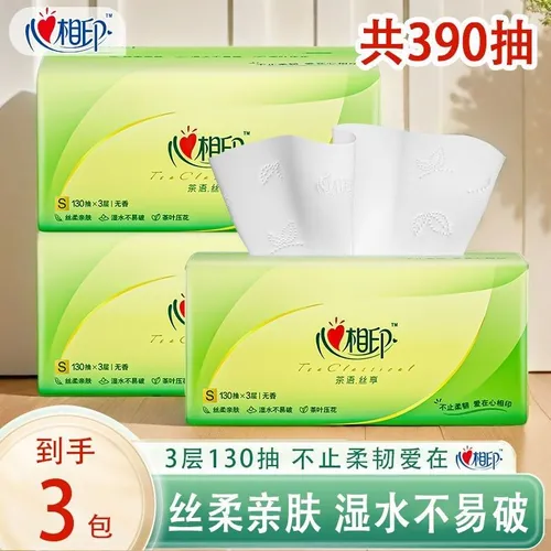 心相印茶语抽纸390张/130抽3层囤货抽纸巾家用卫生纸宿舍餐巾纸即将恢复原价