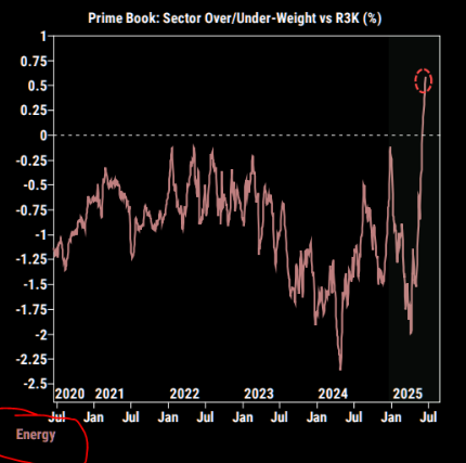 Just in time for the great oil puke... HFs are now O/W Energy stocks relative to the Russel 3000 for the first time in more than five years.