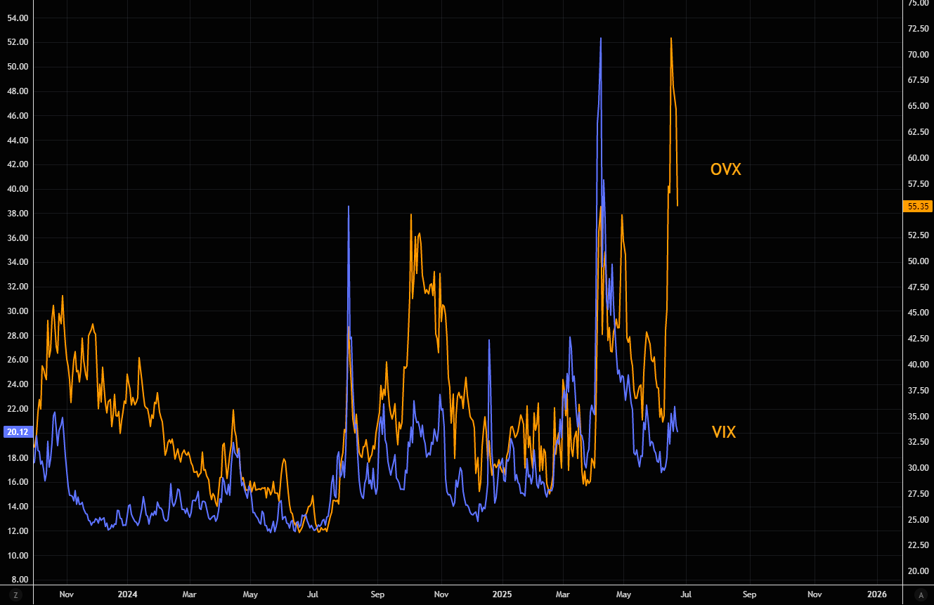 地缘政治对冲工具 OVX 正经历大幅下跌……但还有更大的调整空间。