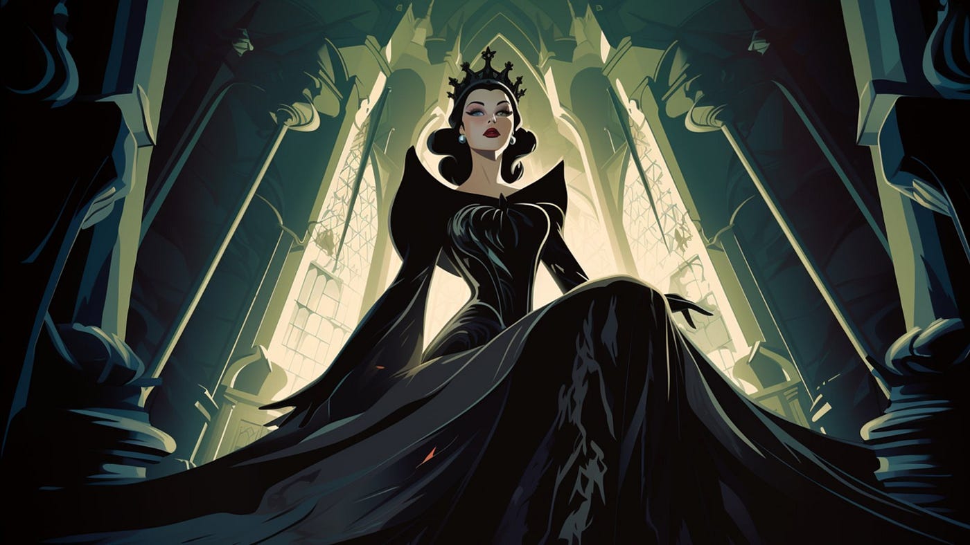 我們都愛一個好反派(如果你說不愛,我可不信)。邪惡皇后是迪士尼最具代表性的反派之一,這個提示詞能捕捉她邪惡中的優雅。