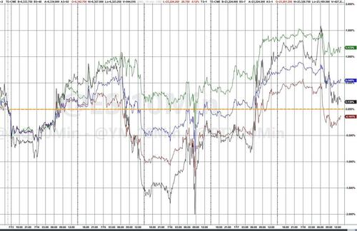 Goldman notes that despite the positive sentiment and lower inflation expectations today, there’s a lot of 'wrong way' action today: Shorts > Longs .. Small > Big .. SW > Semis .. Value > Growth