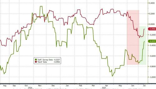 所有这些都使得“软”数据在经历了 7 月初的疲软后,迅速赶上了“硬”数据的相对强势...