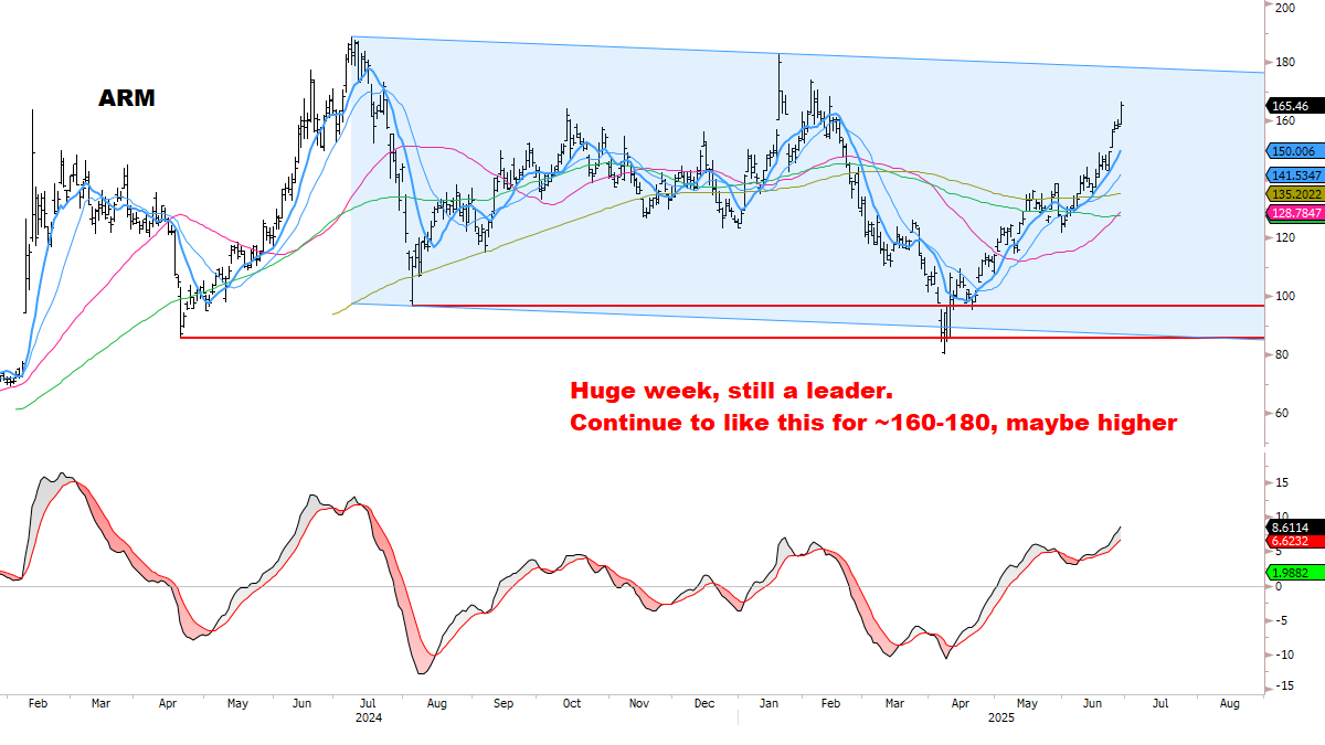 上周我写道:“许多股票仍然表现出色——准备上涨并突破”。This week was strong confirmation — our top names are *still* leading.
