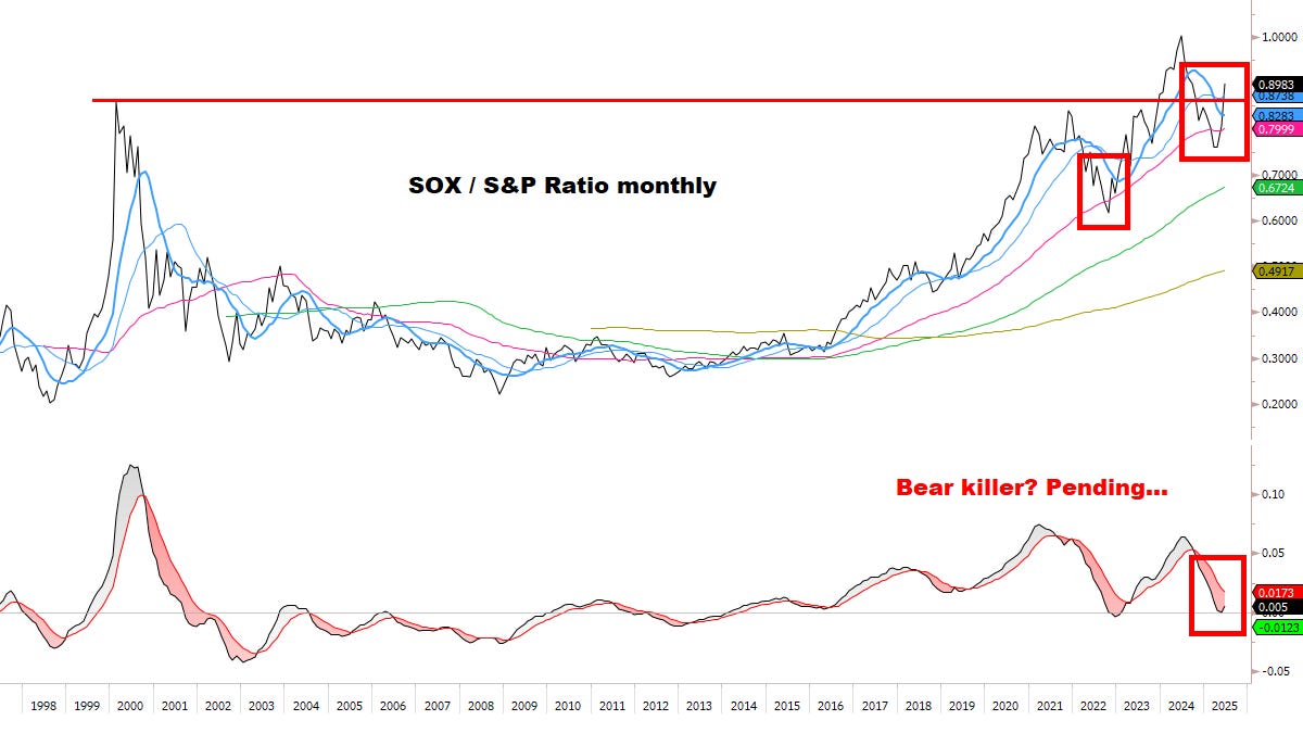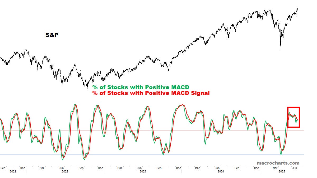 本周强力确认——我们的重点股票*仍然*领跑。SPECIAL UPDATE: How high can stocks go? Time to update an important topping signal I’ve been monitoring *for the right moment*. Keeping an eye on this (and other signals) closely.