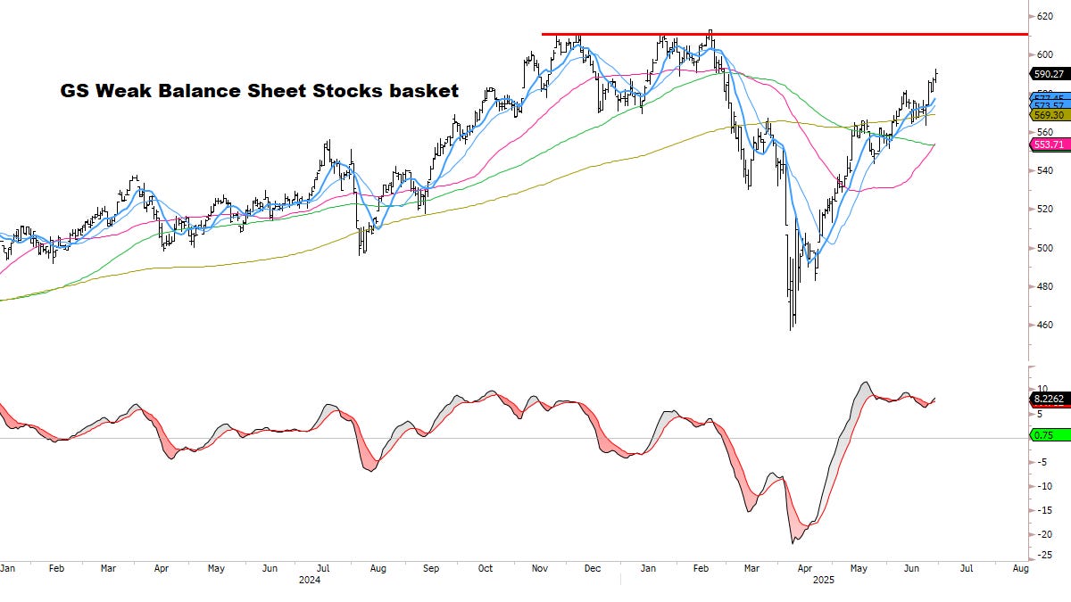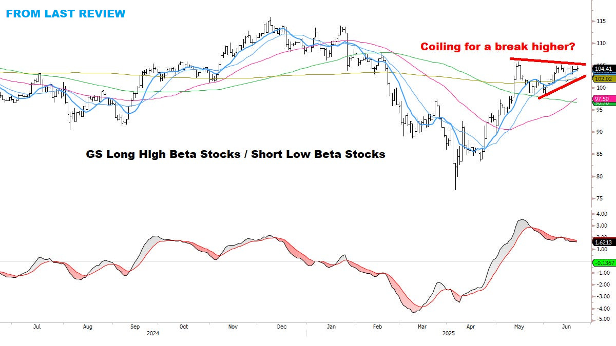 VIX 和信用利差持续下行。Max pain scenario remains: low-volatility summer grind to new highs.
