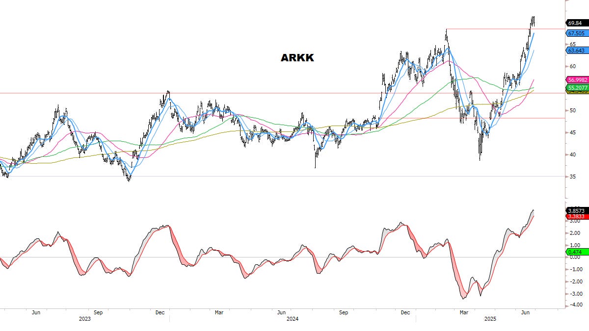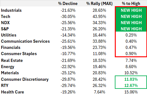 当这些领先领域继续支撑市场并同步移动时,顶部难以形成。Uptrends remain intact, with no bearish reversals in any major Index.