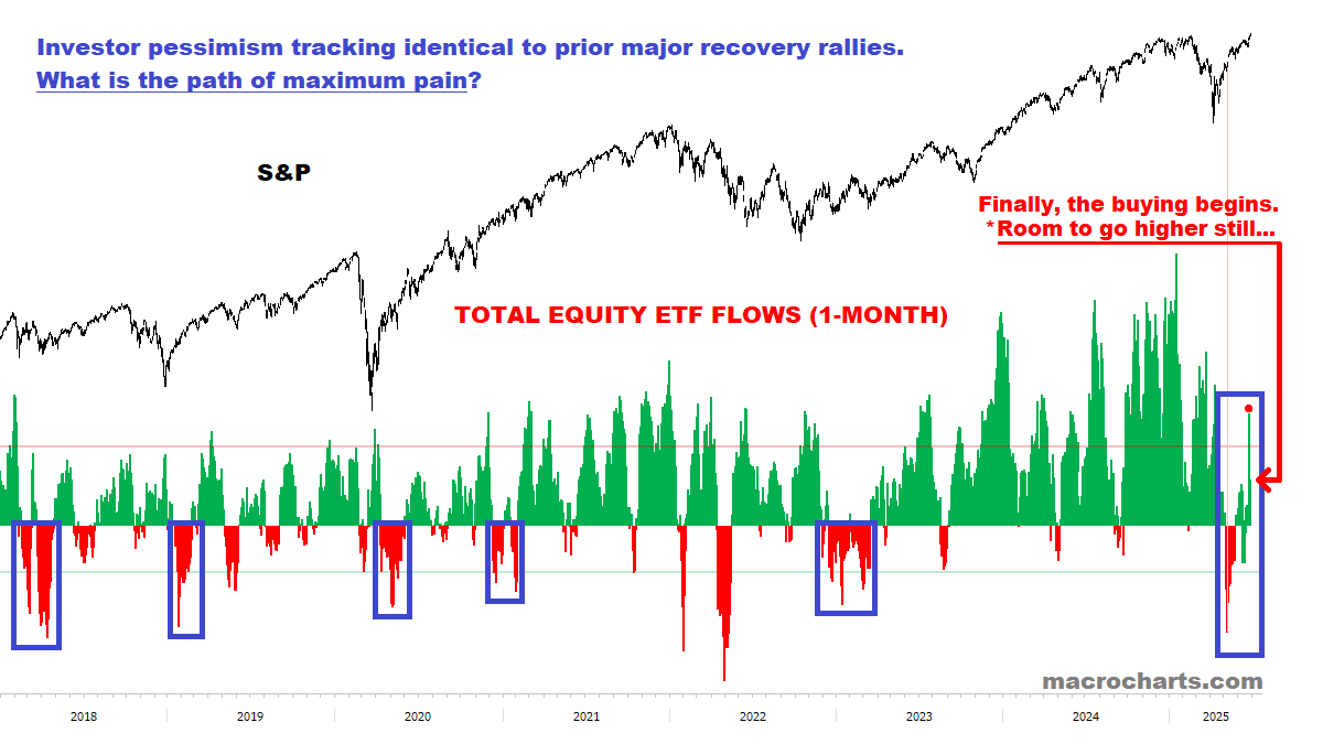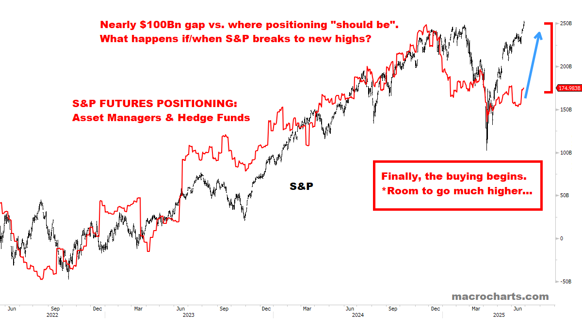 在周三的收盘思考中我写道:“股票突破新高,而大量资金仍严重低配……我们的核心情景正在展开——并准备加速。”Remember what I wrote in April: “at the April 7 bottom, some well-known bulls were publicly apologizing for their view. At the next top of importance, we could see “mea culpas” from some well-known bears. Such is the nature of the stock market.”