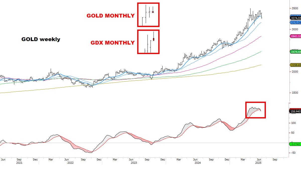 *Important: pending JUNE close on Monday, Gold AND Gold Miners are potentially forming a MONTHLY Bearish Shooting Star — risking a Top.