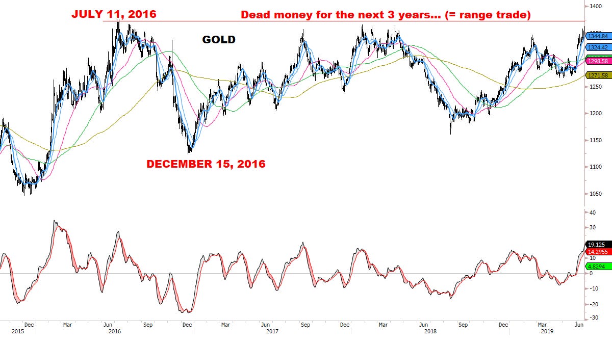 Gold has triggered a Weekly Sell — *despite the Dollar breaking down to the lowest in three years.