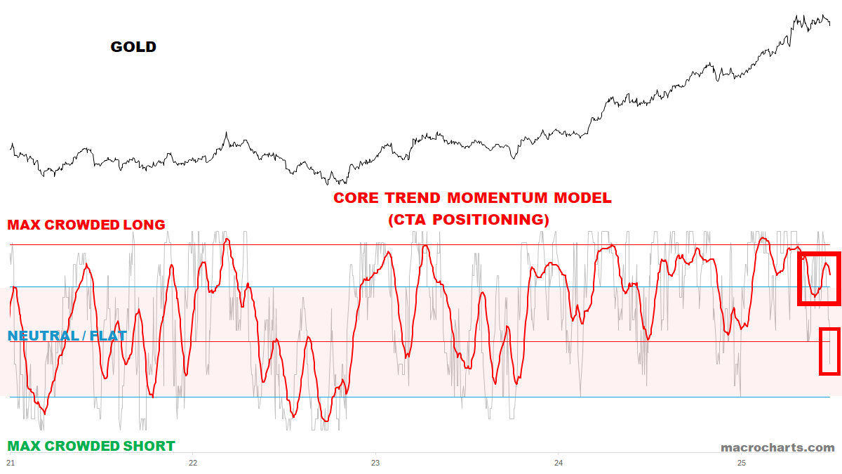 CTA Gold Trend positioning is vulnerable and turning DOWN again: