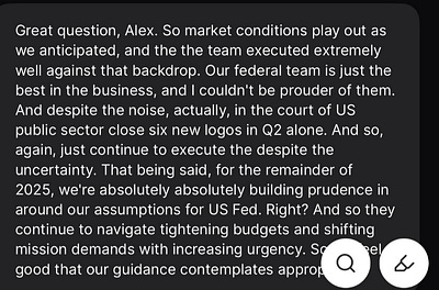 DDOG -6% after CFLT’s warning that a OAI is shifting from CFLT Cloud to a self managed deployment. Lots out there defending the name saying unlikely OAI moves any time soon as demand is through the roof, almost most admitting eventually a move makes sense. Most thinking contract comes due in Q4 so still going to be that overhang there on the next print even if they blow out numbers which complicates the set up right now