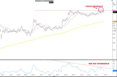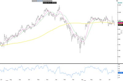 QQQs 在一度接近+1.5%后下跌 40 个基点——价格走势继续显示出更多的消化,因为接下来一个半月是全年最艰难的季节性时期。